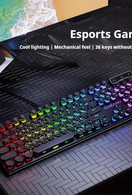 EWEADN GX330 Retro Typewriter Style Gaming Keyboard –...