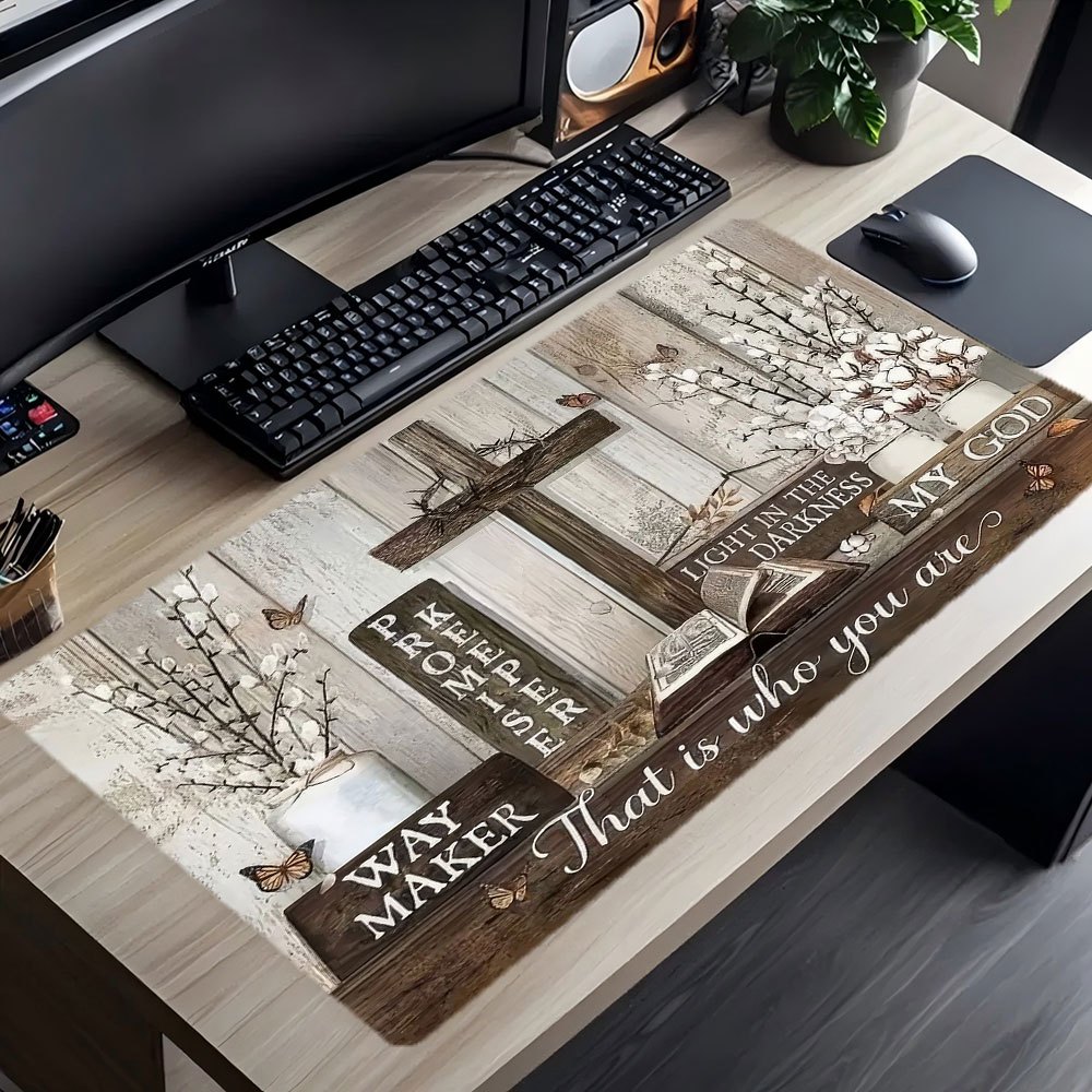 1pc Wooden Cross & Floral Bible Verse Mouse Pad – Durable Anti-Slip Rubber Base, Thick Surface for Precision Control, Full Coverage Keyboard & Mouse Pad for Gaming, Office, Laptop – Ideal Gift for Birthdays, Halloween, Christmas, Thanksgiving, Office Desk Mat | Elegant Desk Accessory | Durable Desk Mat, Large Mouse Pad