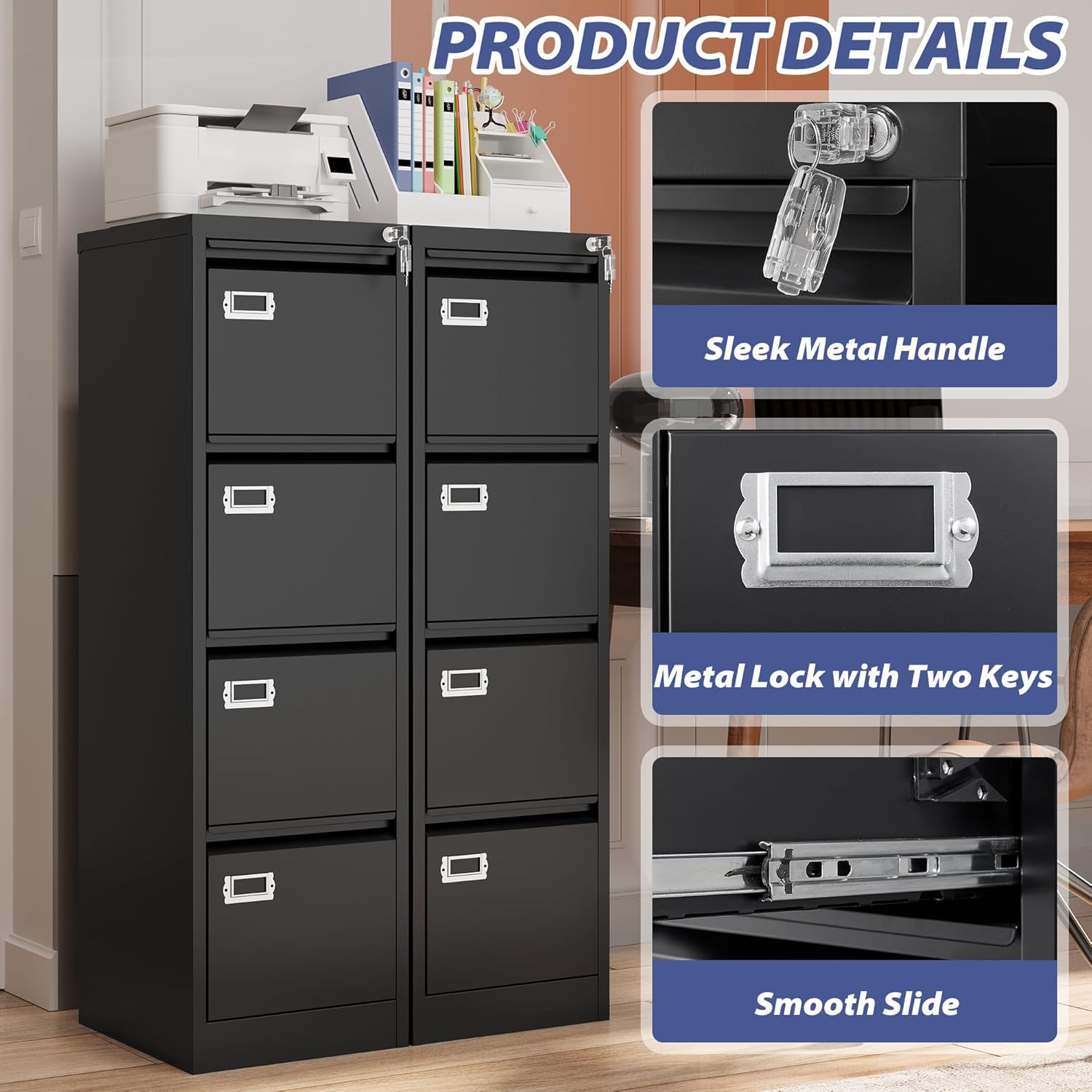 【Anti-tilt Design】This metal file cabinet has been designed with precision interlock devices and an external ANTI-TILT mechanism. As a result, when one drawer is opened, the interlocking system prevents any other drawer from being opened, ensuring that the cabinet stays upright and keeps you safe. This makes it a safer option compared to other file cabinets.