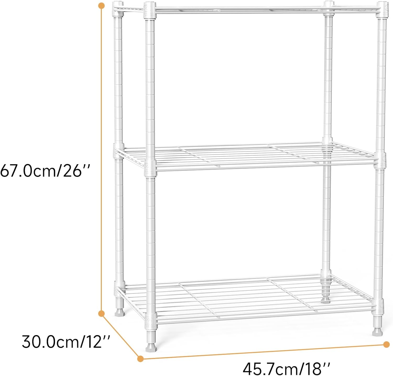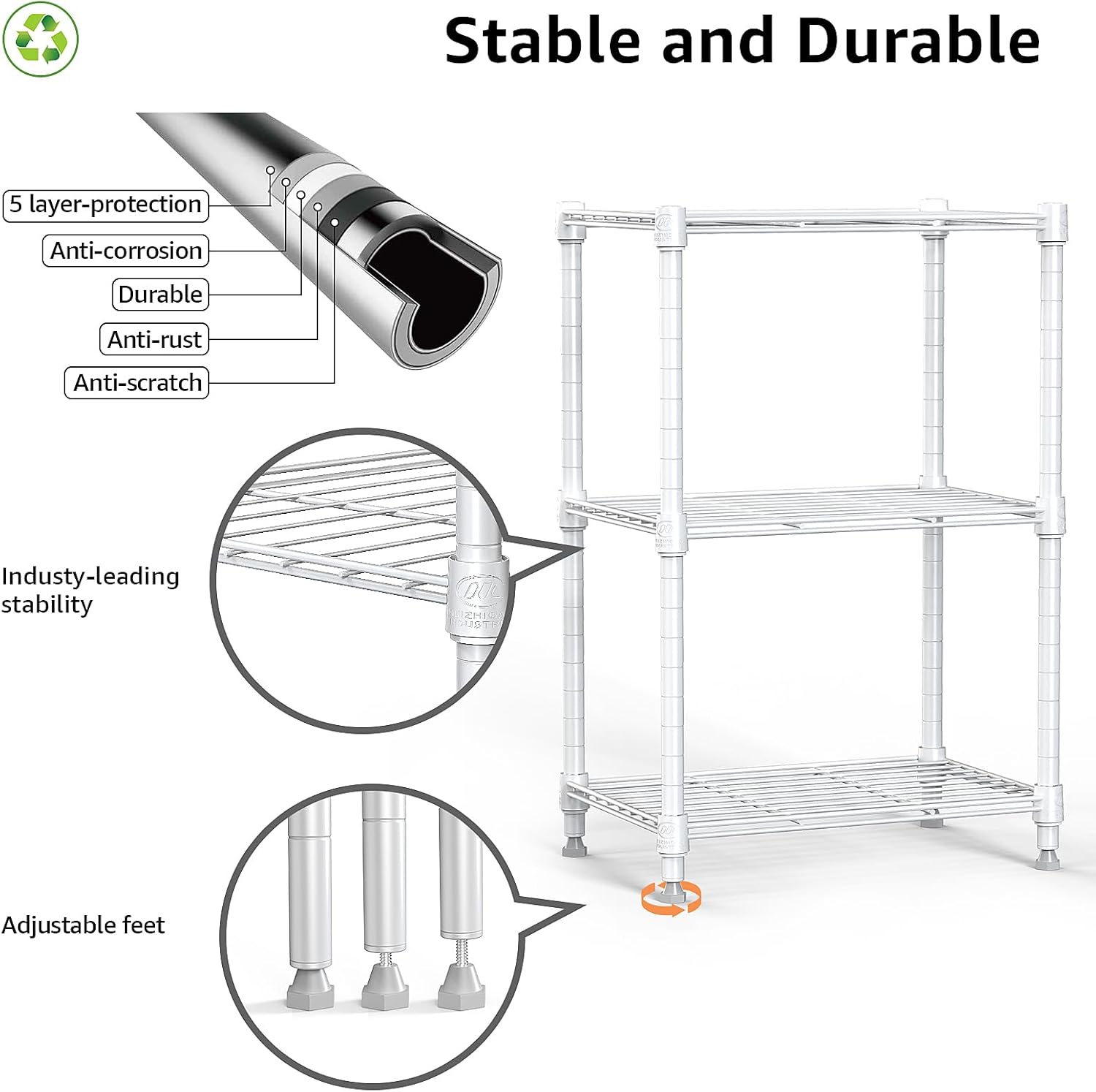 【Reliable Stability】Superior Carbon Steel and 15.9mm pipes enable this metal shelving to be sturdy and durable. Each shelf holds up to 150 lbs and the maximum entire unit weight capacity is 450 pounds.