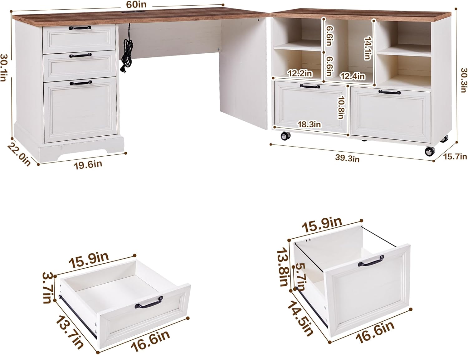 Be the first to review “60″ Farmhouse Executive Desk and 40″ Mobile File Cabinet Combination,L Shaped Executive Desk with Charging Station,Home Office Desk for Office Work,Home Study”