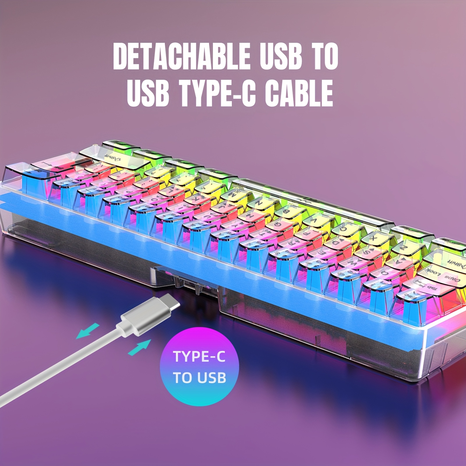 Be the first to review “61-key fully transparent wired gaming keyboard with RGB backlight, ergonomic design, portable and ultra-compact 60% mini film keyboard, USB plug-in, compatible with laptops, Macs, PCs, suitable for office work, Gaming, Traveling, Typist, Perfect Gift” Cancel reply