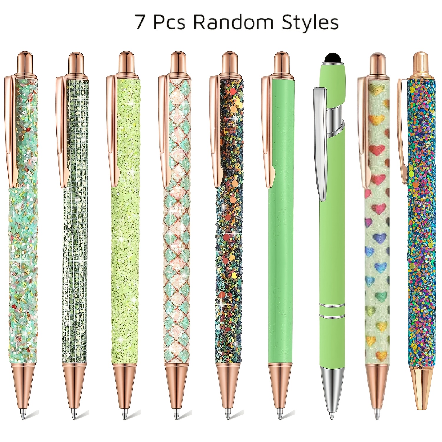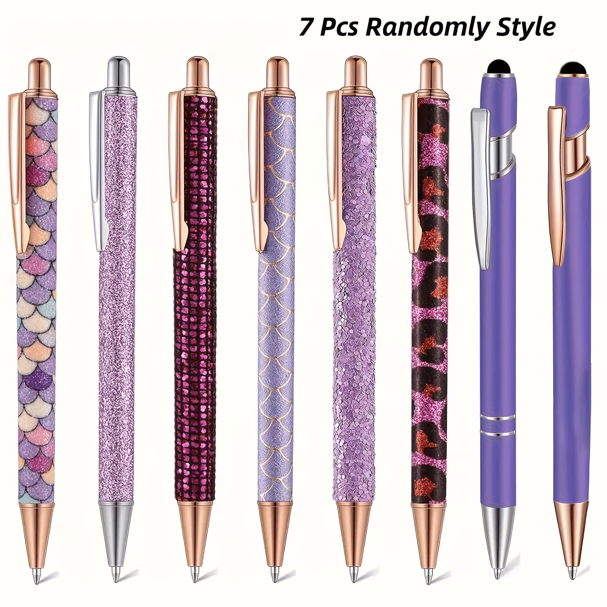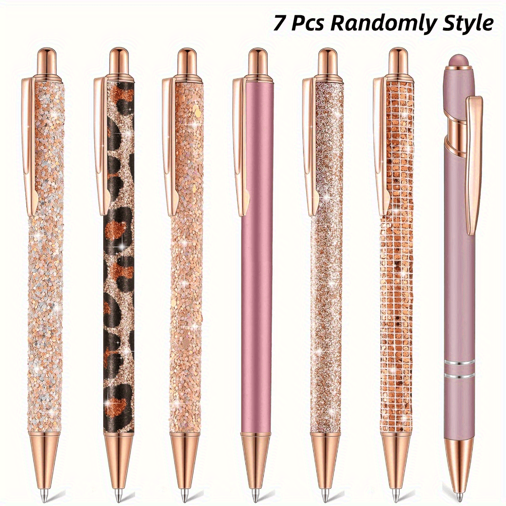 7pcs Elegant Metal Ballpoint Pens for Women, Medium Point Retractable Fountain Pens, with Black Ink, for Journaling, Business, Office, and Gift Use, Suitable for Ages 14+