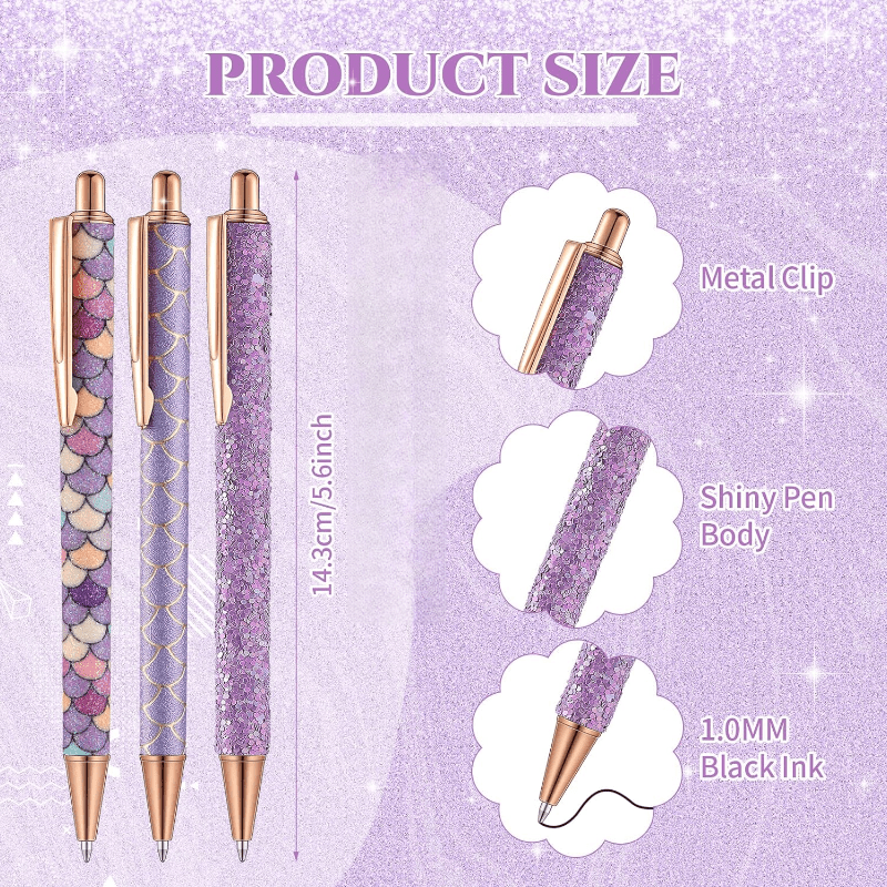 7pcs Ballpoint Pens, Comfortable Writing Metal Retractable Pretty Journaling Black Medium Point Gift Pens for Office Back to School Gifts for Teacher Office Wedding Christmas Graduation Supplies