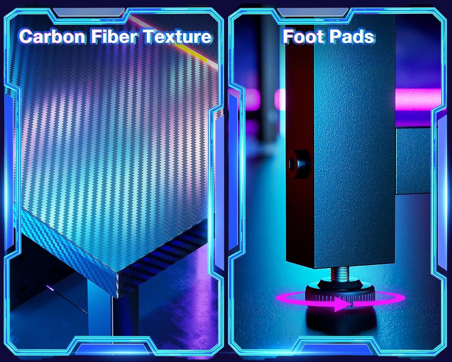 【Stability Strong, Durability Long】 Crafted with meticulous attention to detail, this gaming desk boasts unparalleled stability and durability. Supported by 8 steel legs and adjustable leg pads, it provides a solid foundation for your gaming rig, ensuring that your setup remains steady and secure even during intense gaming sessions.
