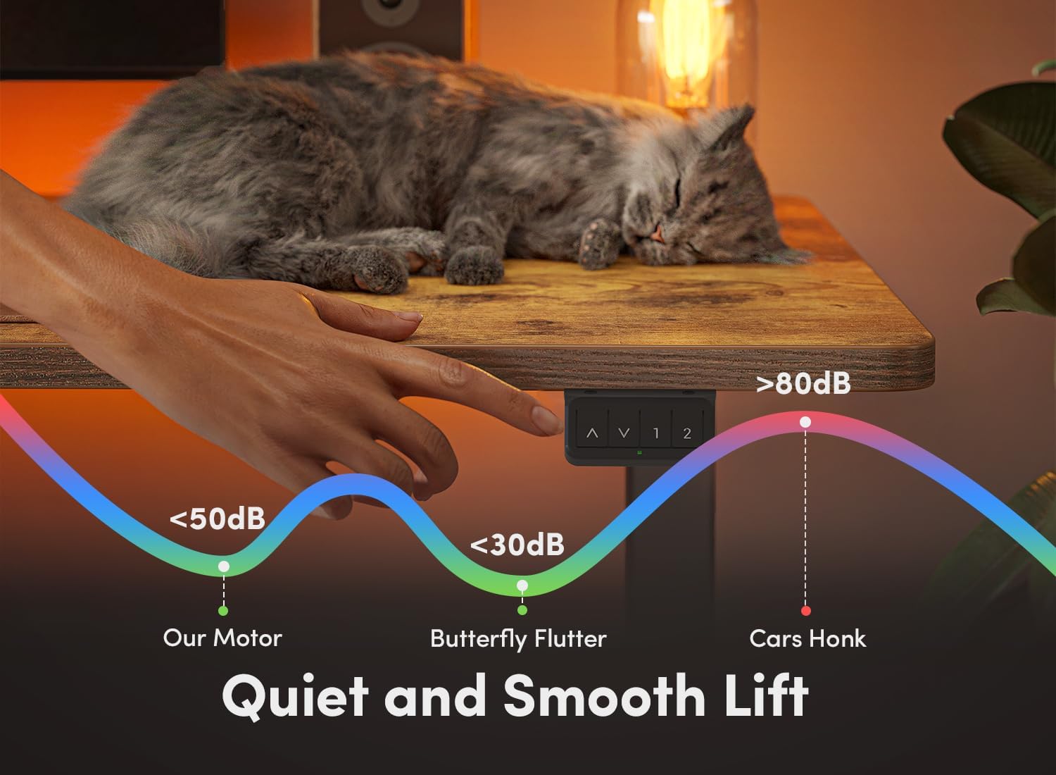 Effortlessly adjust the desk height from 28.3″ to 46.5″ at a speed of 1″/second, with noise levels under 50 dB for a silent transition. Equipped with three customizable memory presets, the desk allows users to switch between preferred heights with a single press, enhancing comfort and productivity.