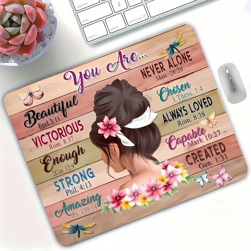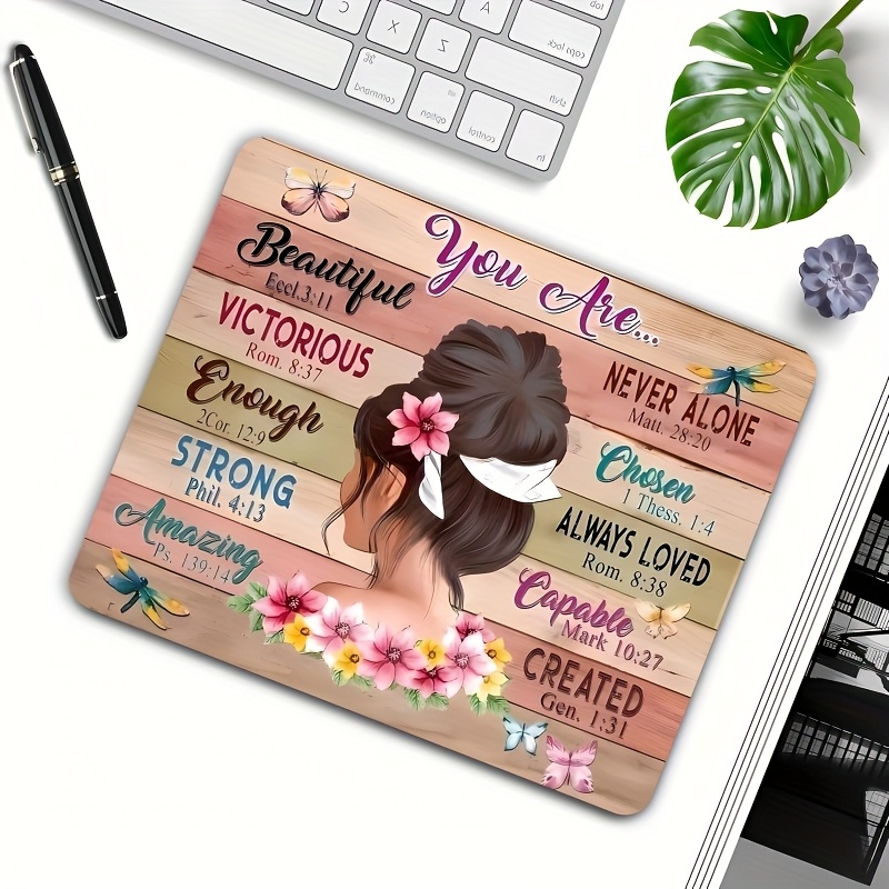 Be the first to review “Floral Design Non-Slip Rubber Gaming Mouse Pad with Smooth Gliding Surface, Inspirational Bible Verses & Christian Faith Symbols – Square Desk Mat for Office, Laptop, Desktop Decor, Office Desk Accessory | Charming Desk Accessory | Spiritual Decor Item, Desk Pad” Cancel reply