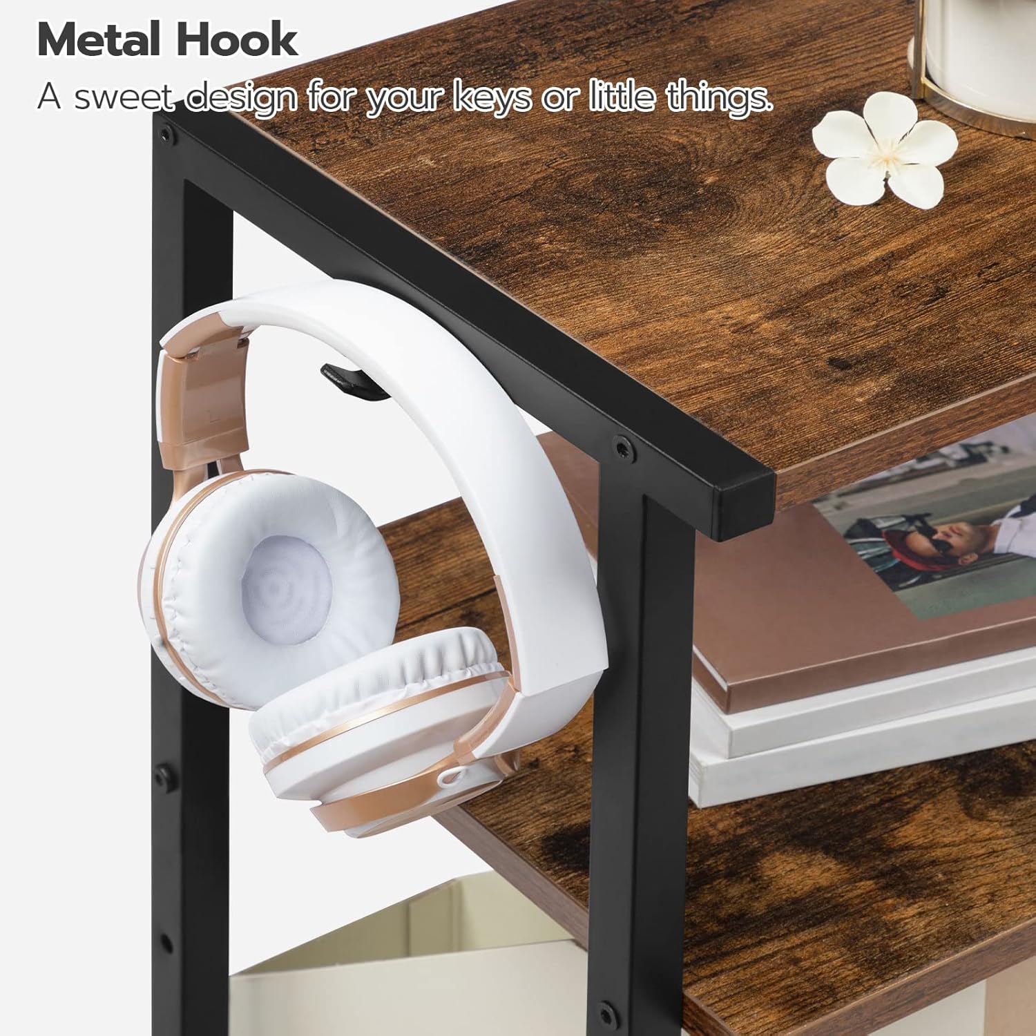 3 Storage Layers: The 3 storage shelves expand usage area of this printer stand. You can classify your office supplies by adjusting the middle shelf. The side hook at the top shelf can be used to hang keys and other common items