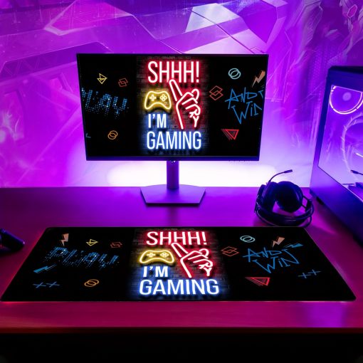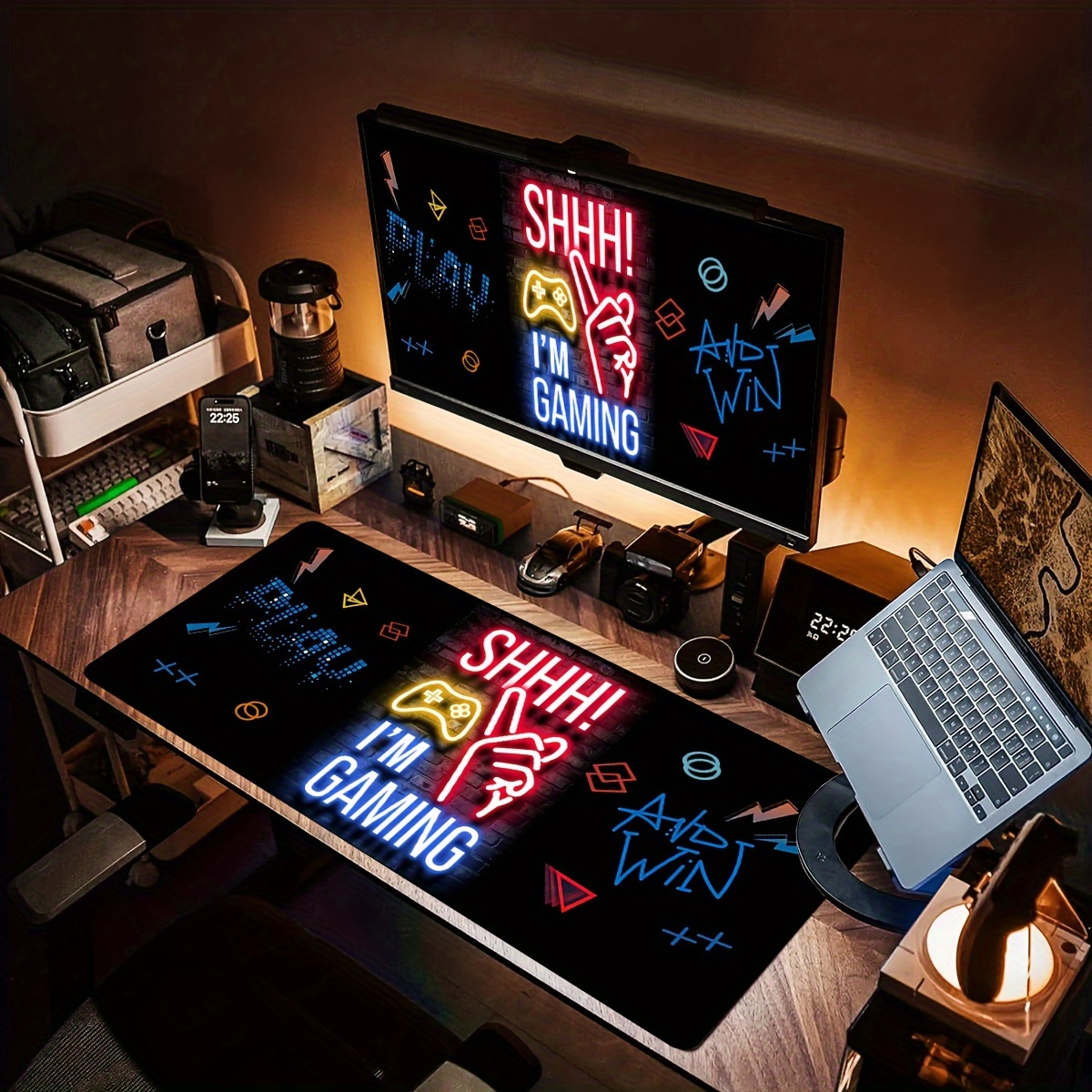 1pc Large Gaming Mouse Pad with UV Reactive Rubber Base, Washable Polyester E-Sports Desk Mat, Vibrant Game Console Print, Non-Slip Mousepad for Gamers and Office Use, Gaming Desk Accessory | Vibrant Desk Mat | Easy Clean Mat, Mouse Pads for Des