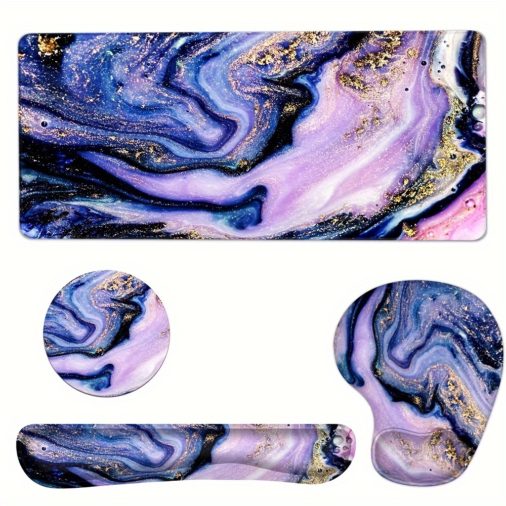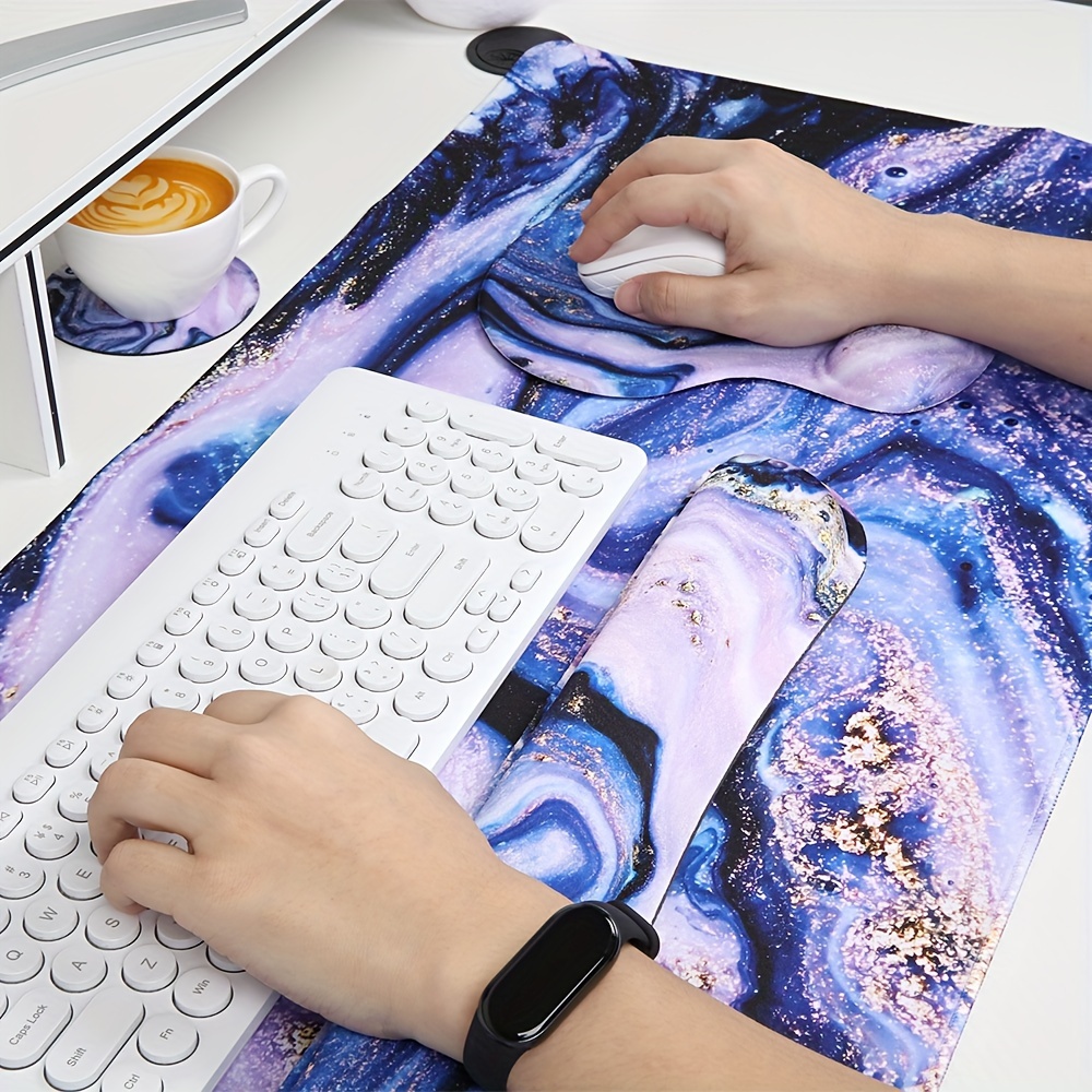 4 in 1 Keyboard and Mouse Pad, Extended Mouse Pad with Stitched Edges, Mouse Pad and Keyboard Wrist Rest, Smooth Gaming Mouse Pads, Keyboard Mats for Desk, Pink and Butterfly Gir