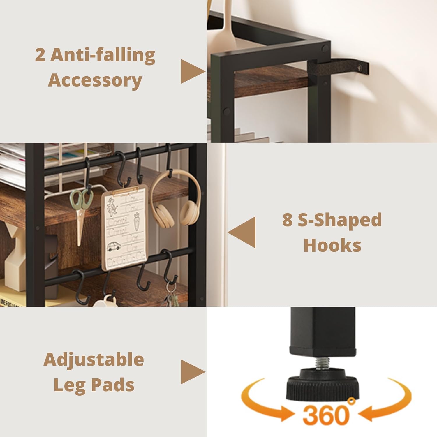 【File Cabinet with Bookshelf】The filing cabinets for home office is equipped with 6-layer open storage shelves, providing ample storage space for office supplies, allowing you to arrange files and decorations in a stylish way. Equipped with 8 hooks on the side, you can hang briefcases, mugs, headphones, umbrellas, etc.