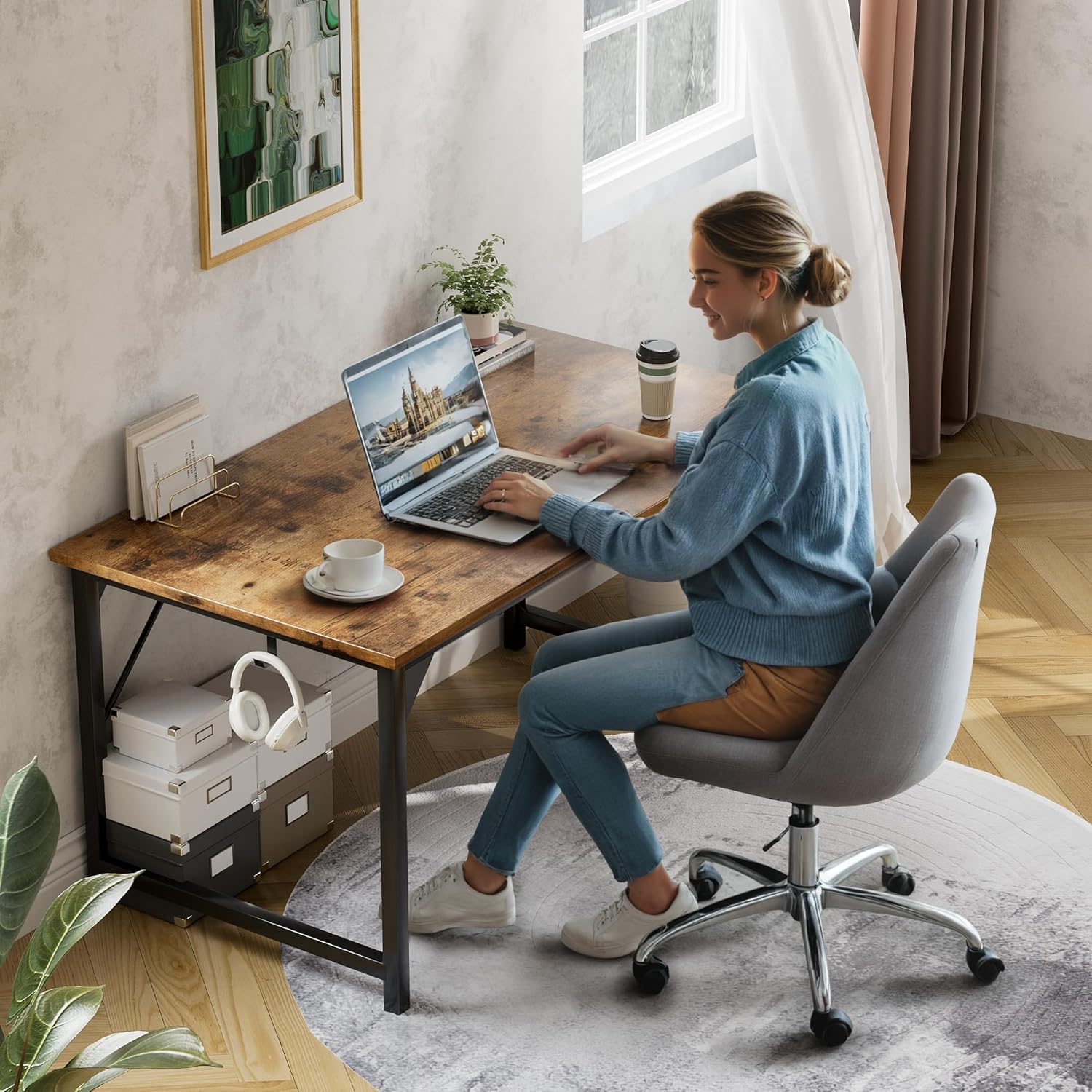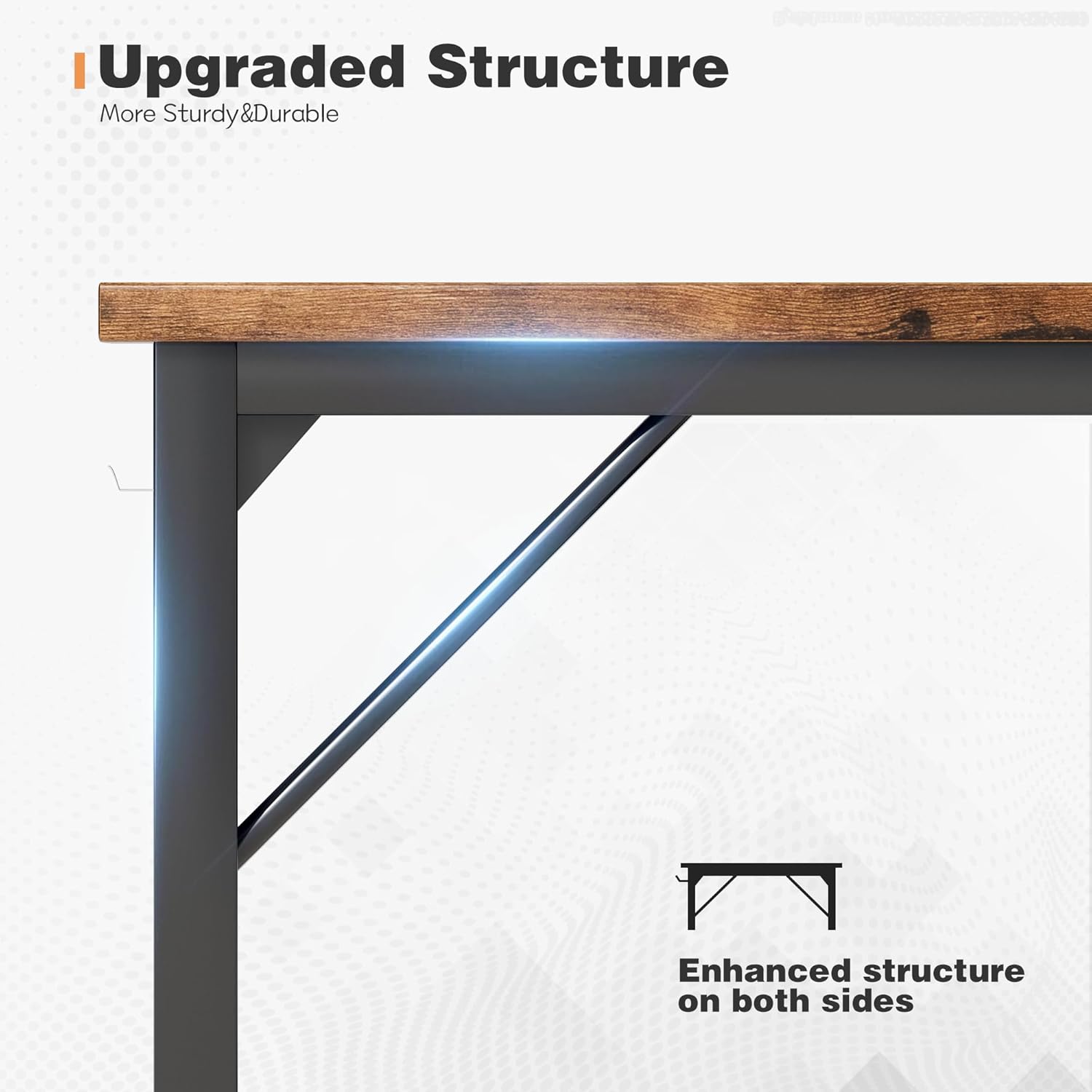 【Durable & High-Quality Build】Crafted from premium materials, the desk features a thick, scratch-resistant, and water-repellent particle board top that’s easy to clean. The sturdy metal frame, reinforced with corner supports, ensures exceptional durability and can support up to 188 lbs, making it reliable for daily, long-term use.