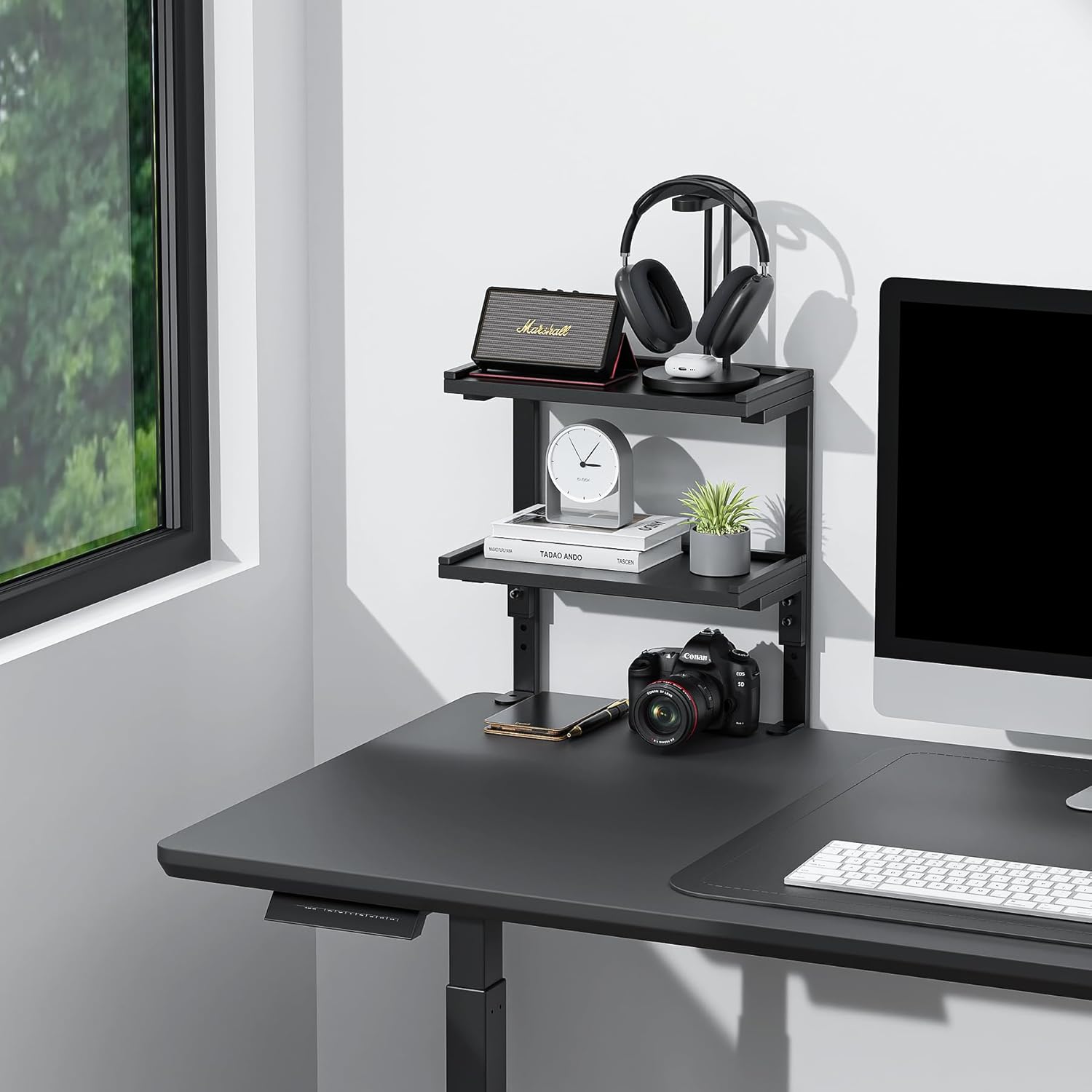 【Sturdy and Heavy-duty Design】: The thickened carbon steel frame design ensures the stability of the desk organizer and eliminates any concerns about shelf shaking. It can bear 30 pounds, which perfectly solves the problem of having nowhere to put games, office equipment or decorations, making your desktop look unique and neat.