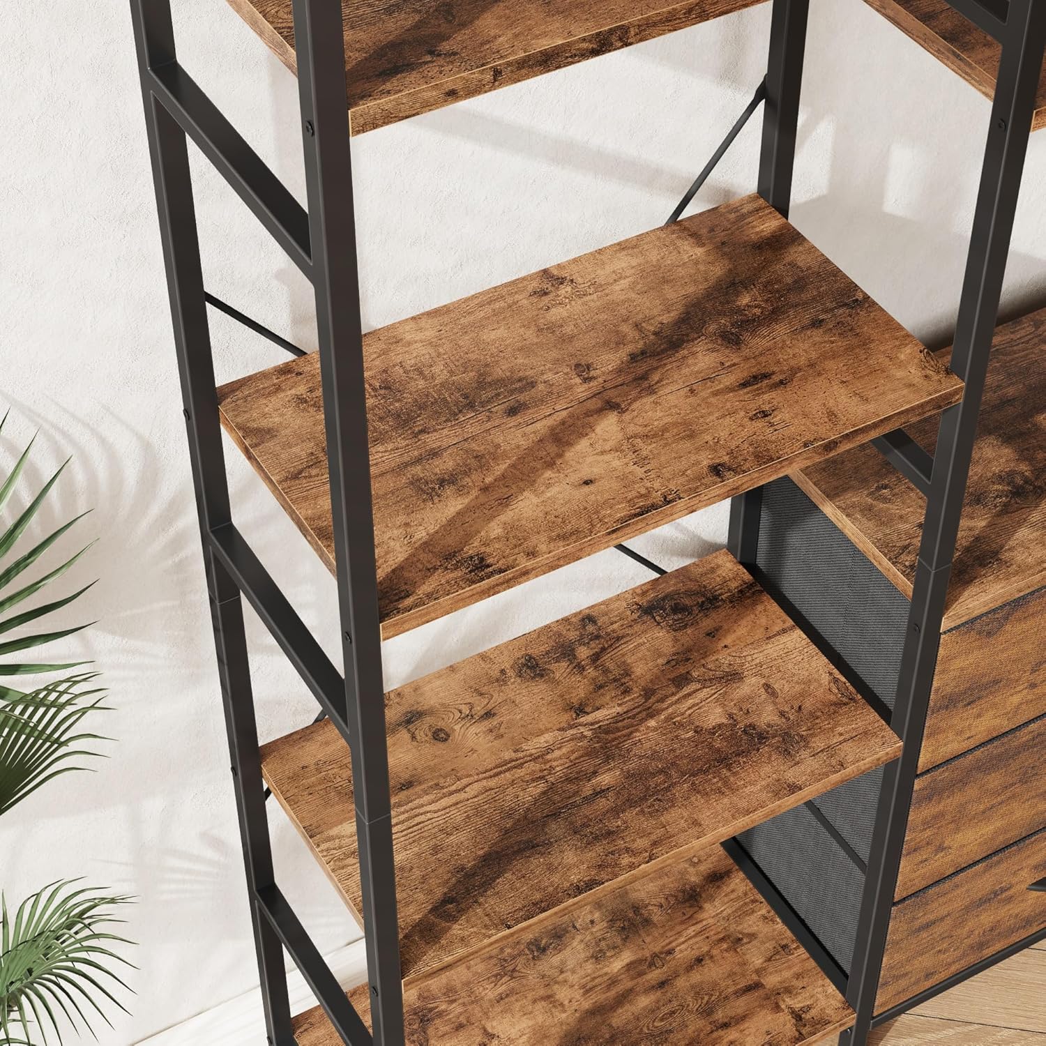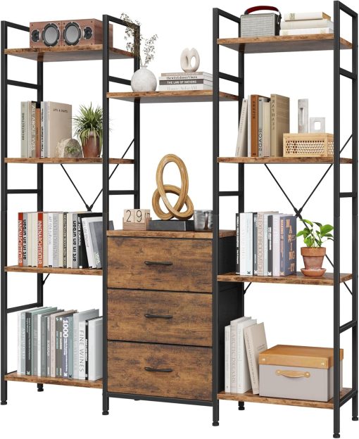 Be the first to review “Triple Bookshelf with 3 Fabric Drawers, 4-Tier Book Shelf and 10 Display Shelves, Industrial Large Bookcase for Home & Office, Rustic Brown, 47” Wide”